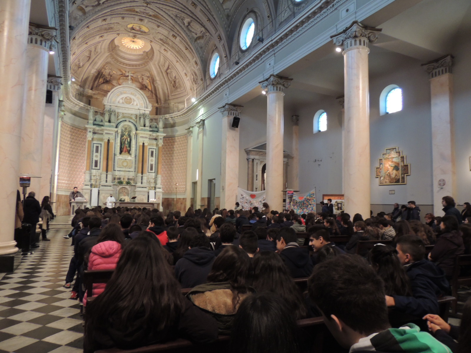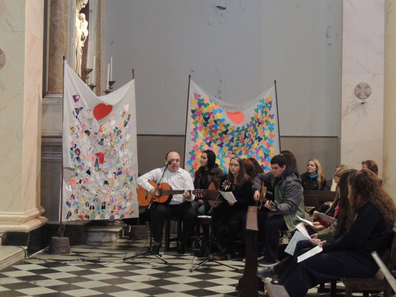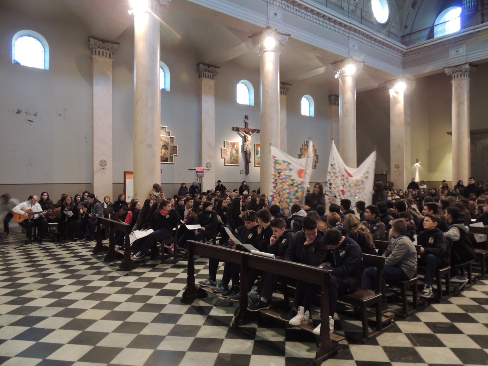 Comenzamos la mañana del viernes 3 de junio con la bendición de la nueva capilla del Colegio, que está ubicada en la ampliación del sector de oficinas en la planta baja del edificio de Secundaria. Allí estuvimos presentes representantes de todos los niveles y actores de la comunidad educativa: desde niños de Nivel Inicial hasta adolescentes de Bachillerato; desde un representante de los albañiles que trabajaron en la obra hasta el artista que pintó los cuadros; desde las familias hasta los docentes, funcionarios y la comunidad de Hermanos.