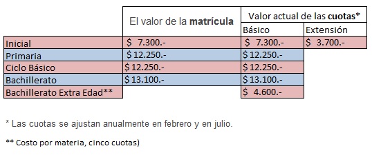 El Colegio cobra anualmente matrícula y diez cuotas (febrero a noviembre).