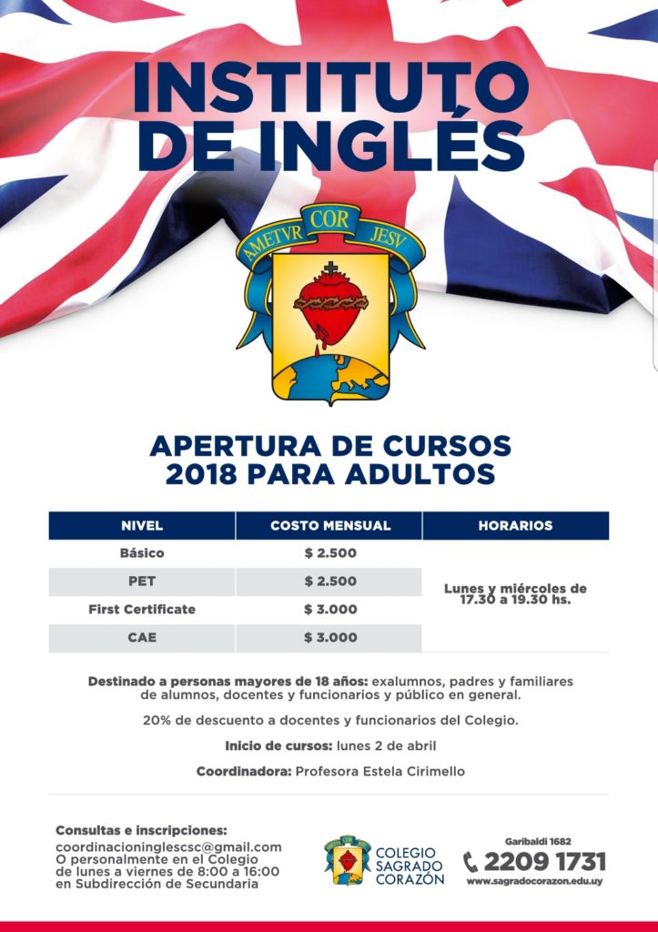 El Instituto de Inglés del Colegio Sagrado Corazón es una nueva oferta educativa que permite seguir ampliando los servicios que el Colegio ofrece a la comunidad educativa en general.